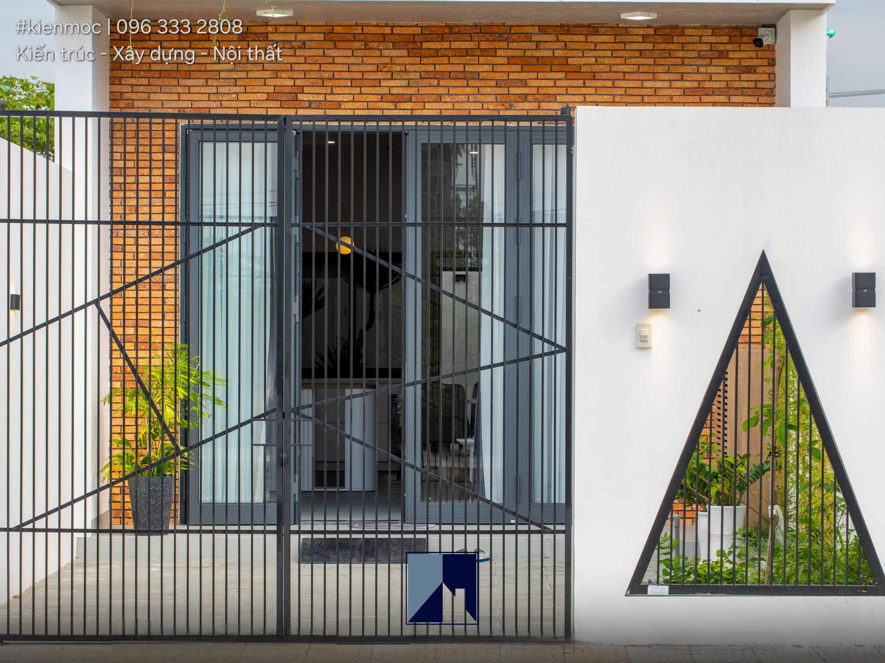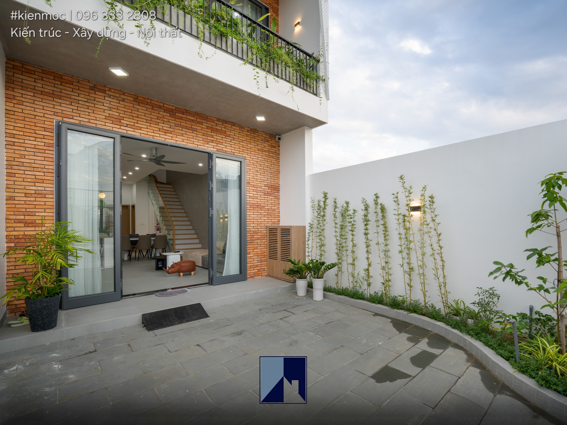 Bên cạnh đó, hệ gạch cổ ốp trước mặt tiền cũng khiến cho công trình thêm phần nổi bật, giúp tôn lên sắc trắng của tấm lam.
