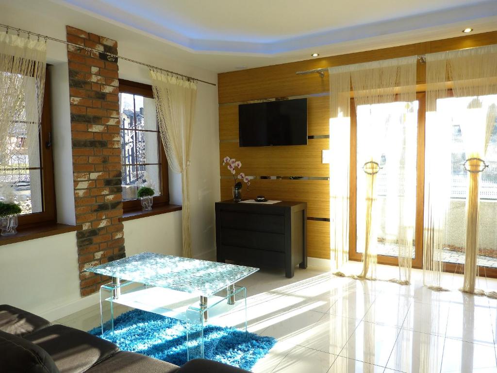 Apartamenty Asenata also provides you with free WiFi access. This a self-catering accommodation is located in Ustroń, within less than 1.1 km from Ustroń Zdrój Train Station. Colourfully decorated, the accommodation will provide you with a flat-screen satellite TV. A shower, and a hairdryer are provided in the bathroom. The fully equipped kitchen boasts with a dishwasher, a microwave fridge and induction hob. Apartamenty Asenata features a terrace with furniture and a side mountain view. There is free on-site private parking. The property is next to a kayaking marina and 500 metres from the Amphiteatre Czantoria Ski Station is 2 km away.
